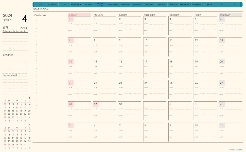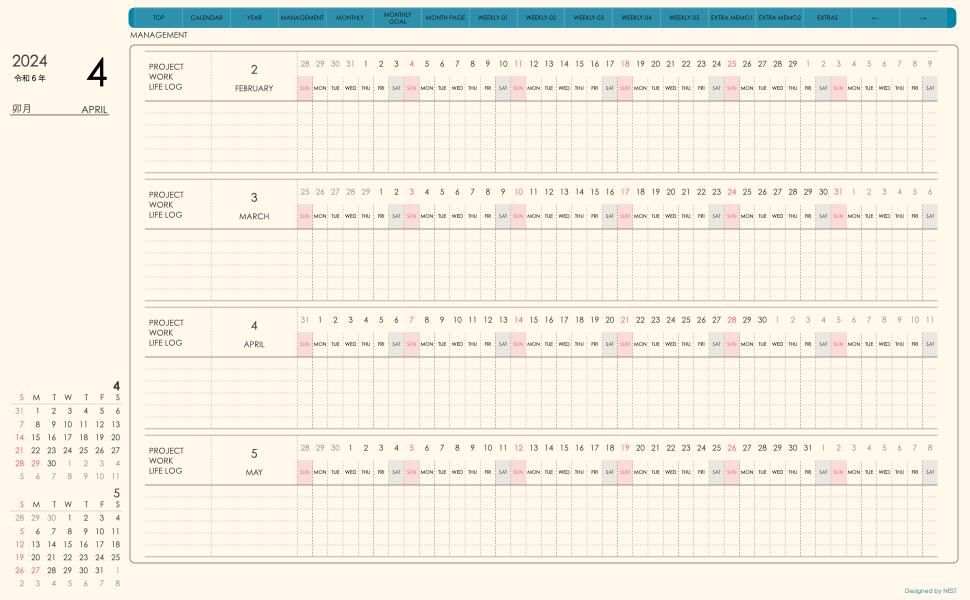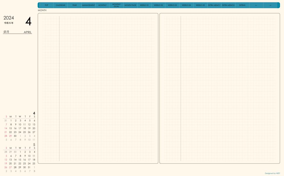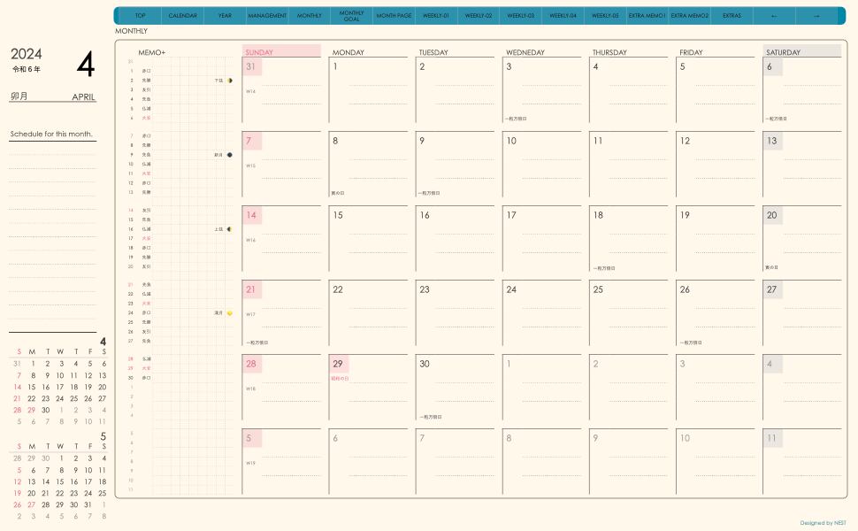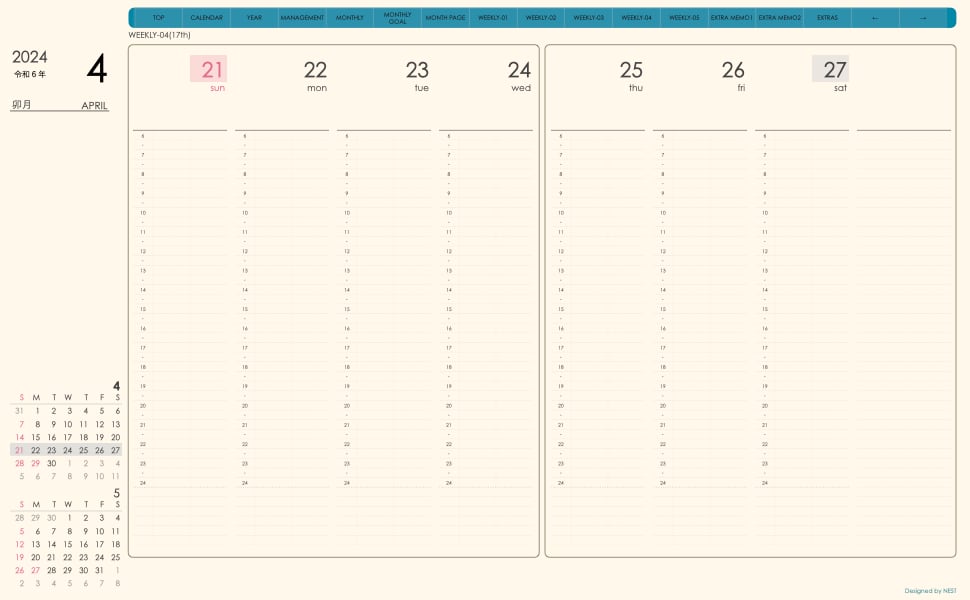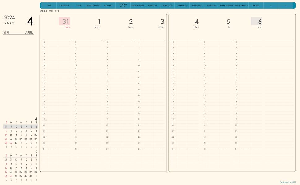 **(week-verticalシリーズ)日曜日始まり2024.04月版**が登場!