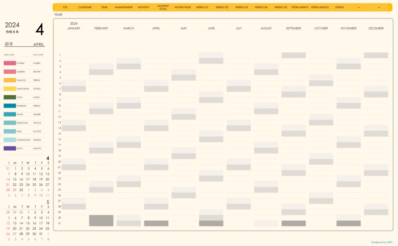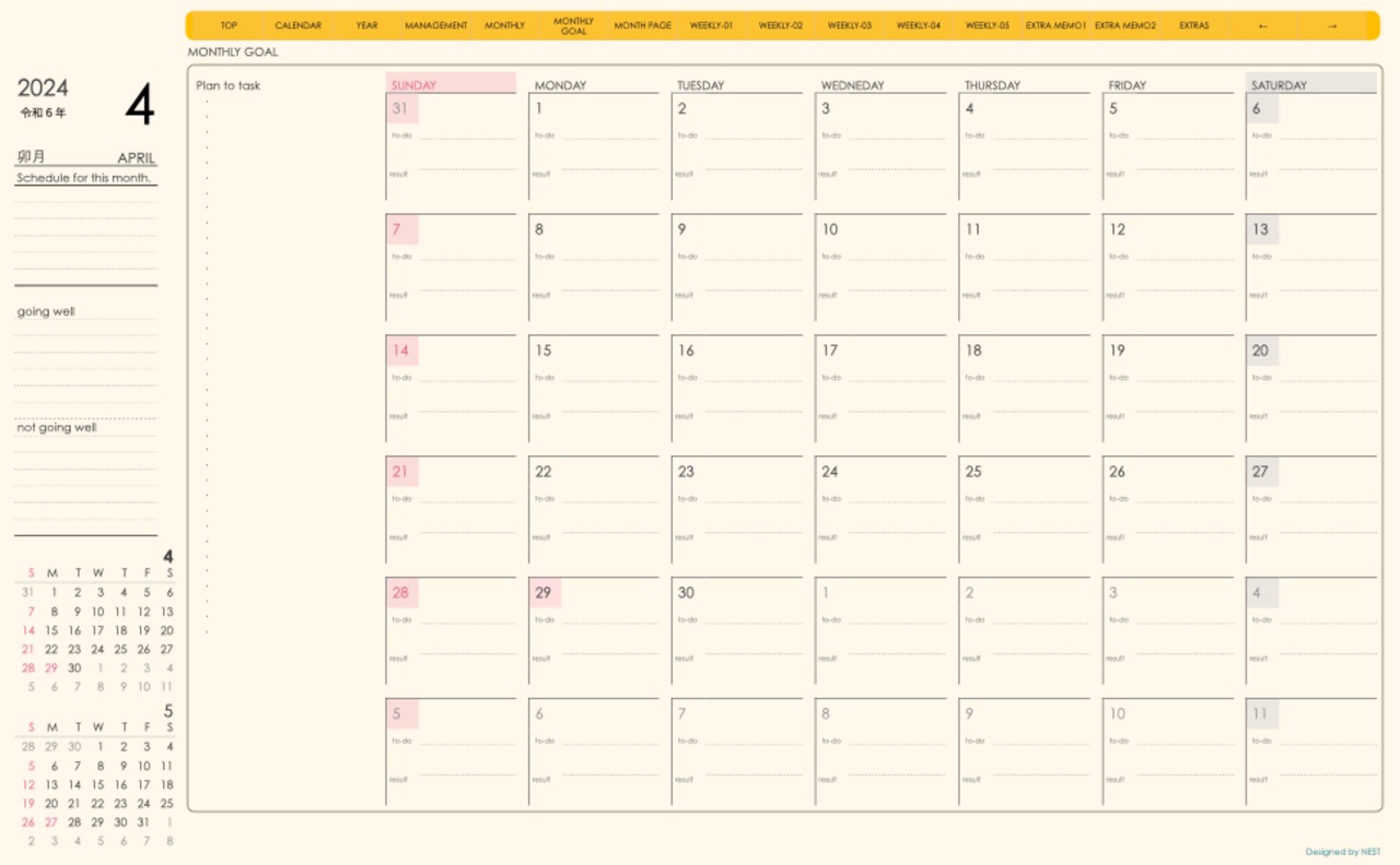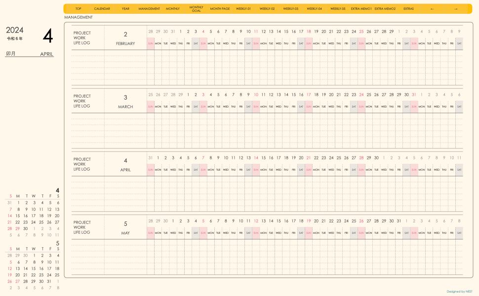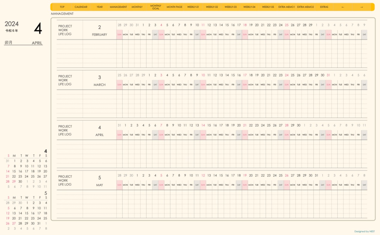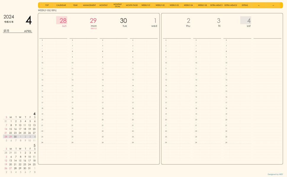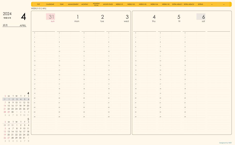 **(week-verticalシリーズ)日曜日始まり2024.04月版**が登場!