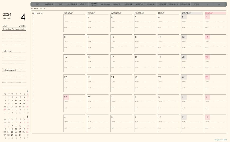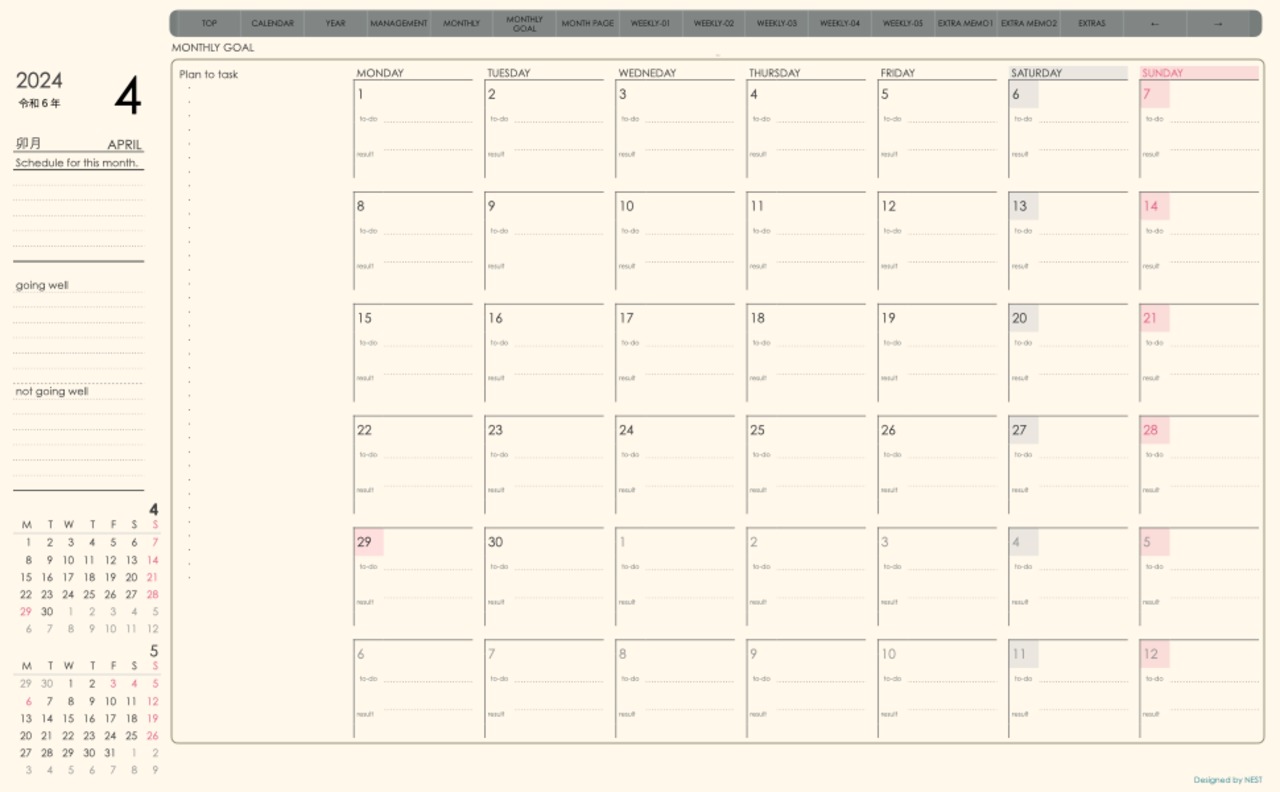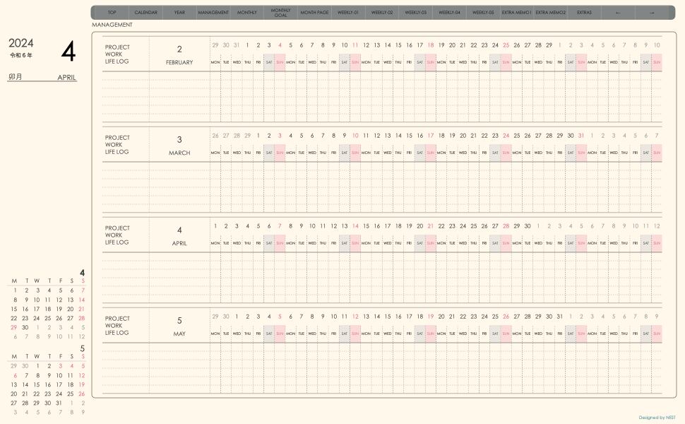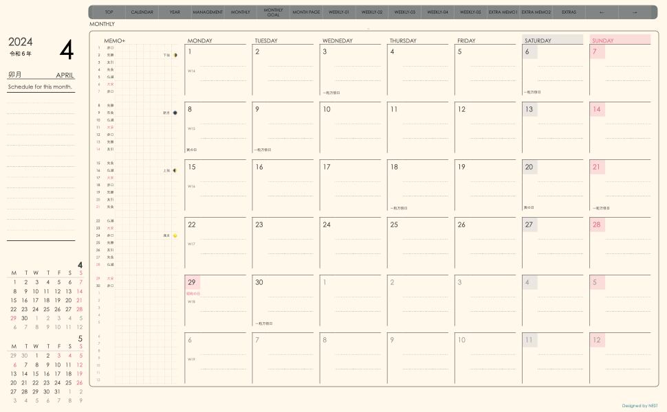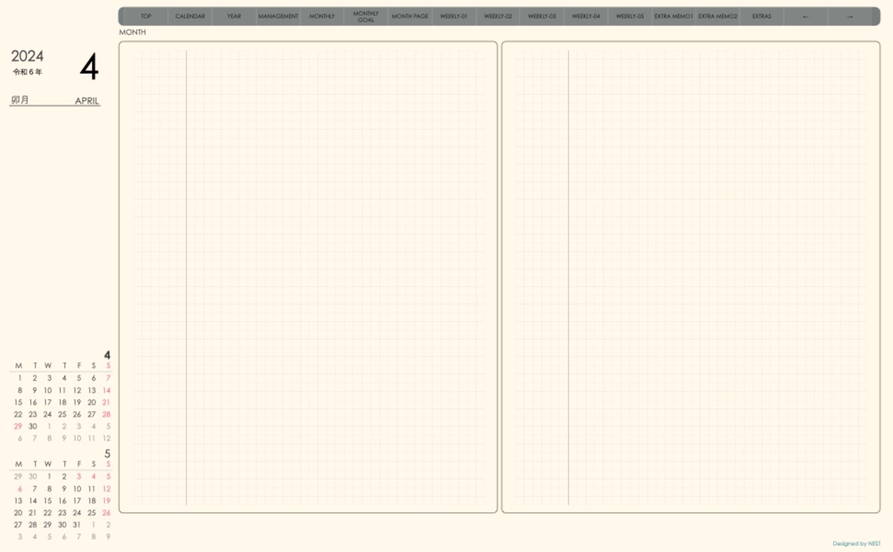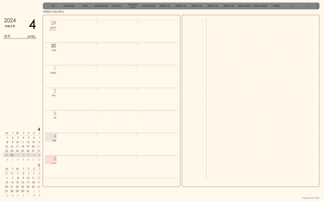 **week-leftシリーズ月曜日始まり2024年04月版**の登場!