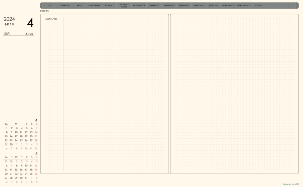 予定の把握とメモの両方が使えるレイアウトとなっています。