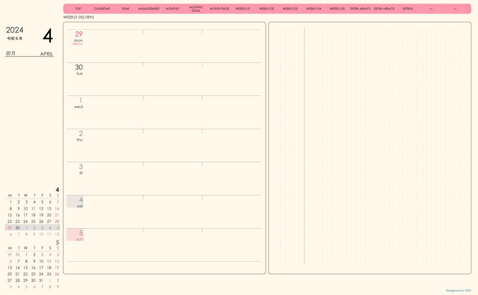 ・ウィークリー(leftデザイン)5ページ