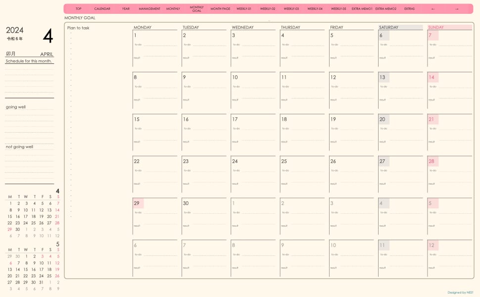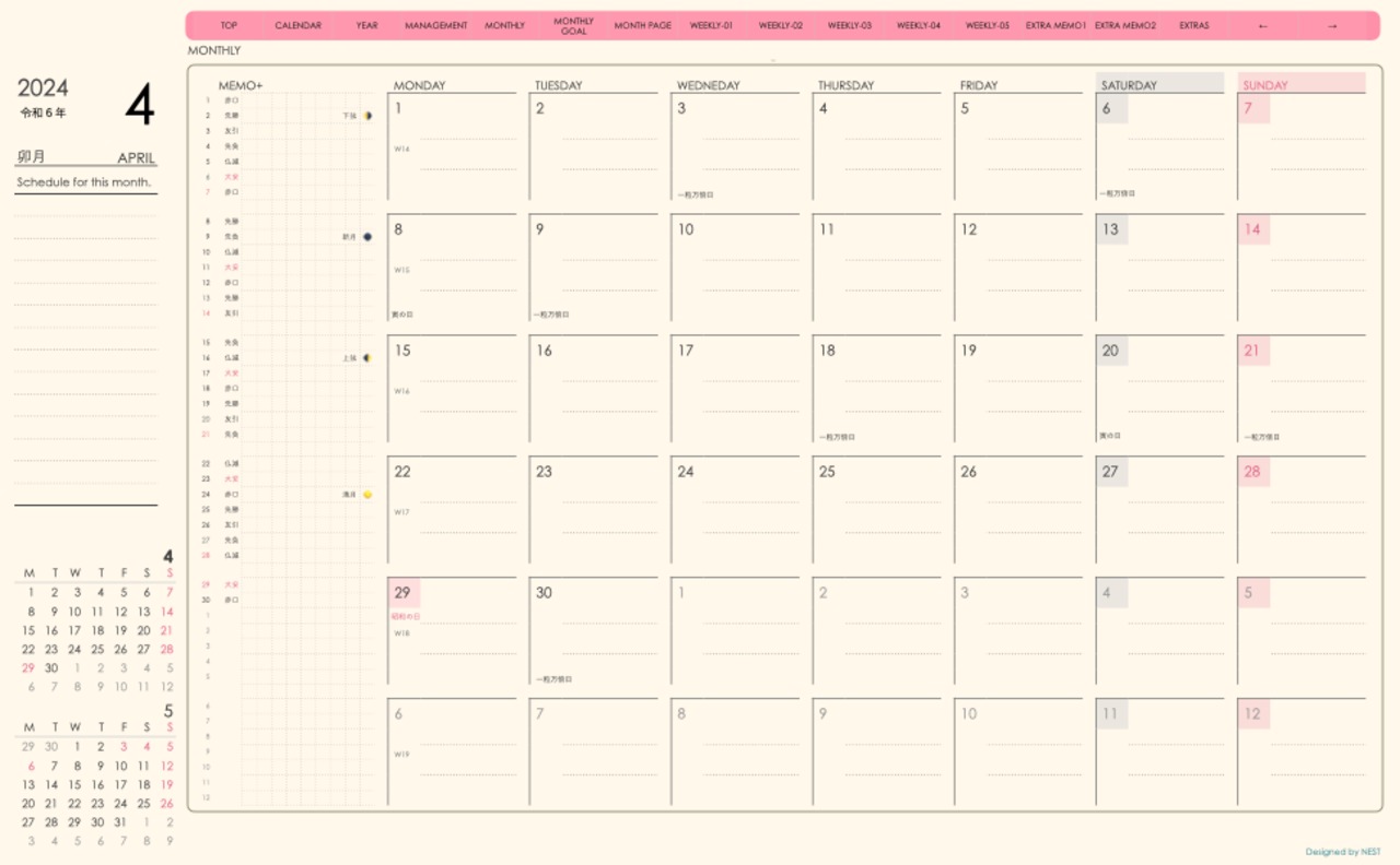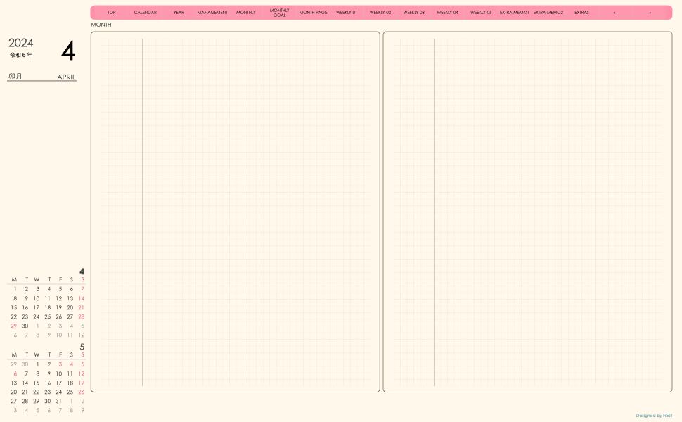 **week-leftシリーズ月曜日始まり2024年04月版**の登場!