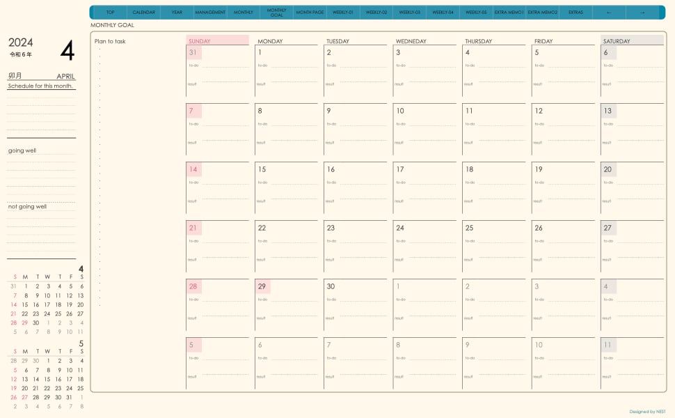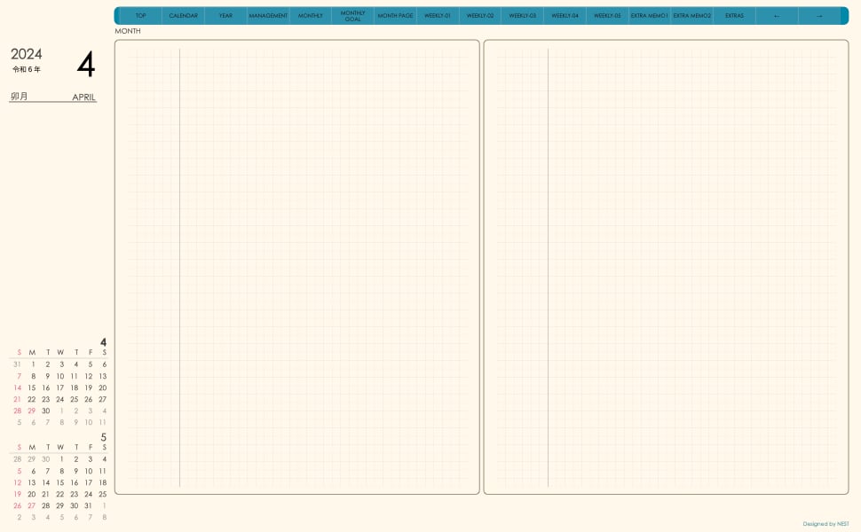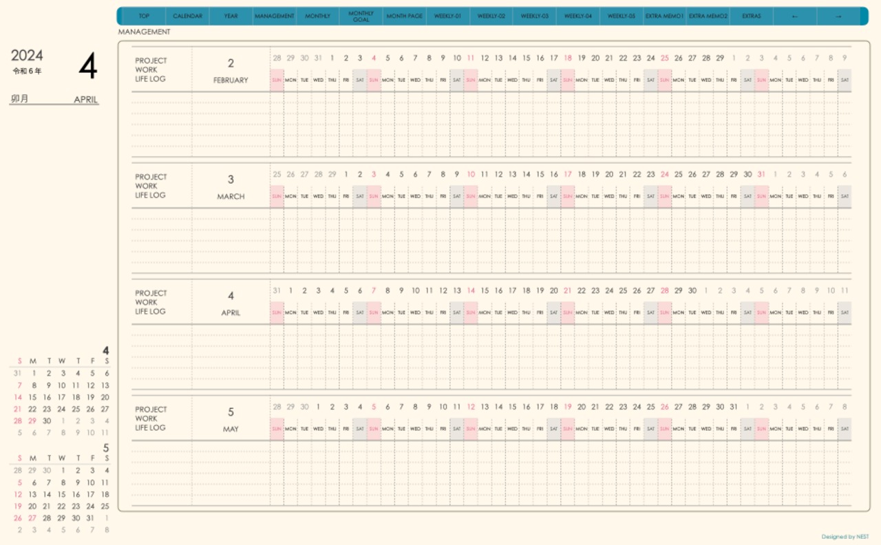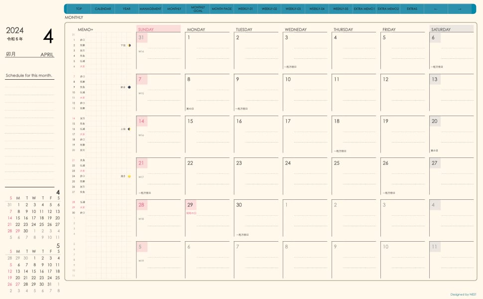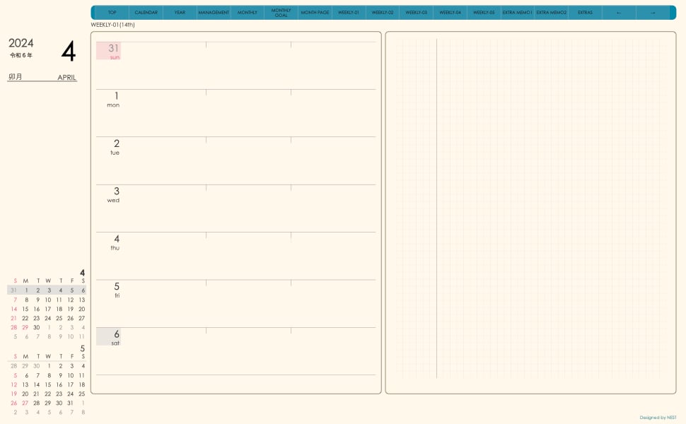 **week-leftシリーズ日曜日始まり2024年04月版**の登場!