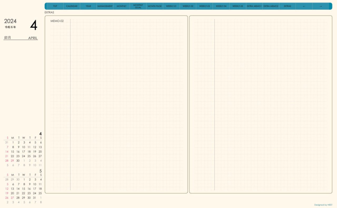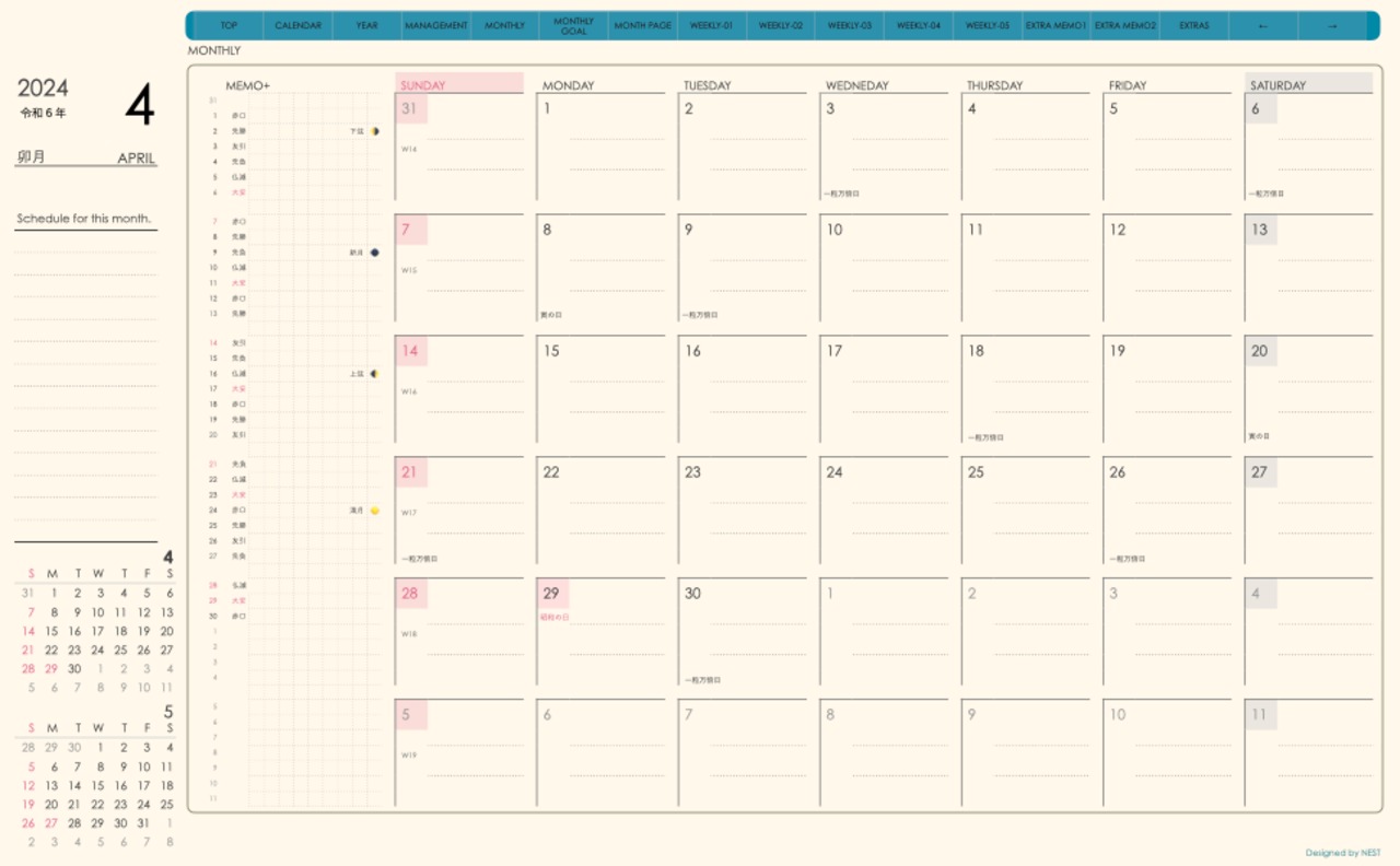予定の把握とメモの両方が使えるレイアウトとなっています。
