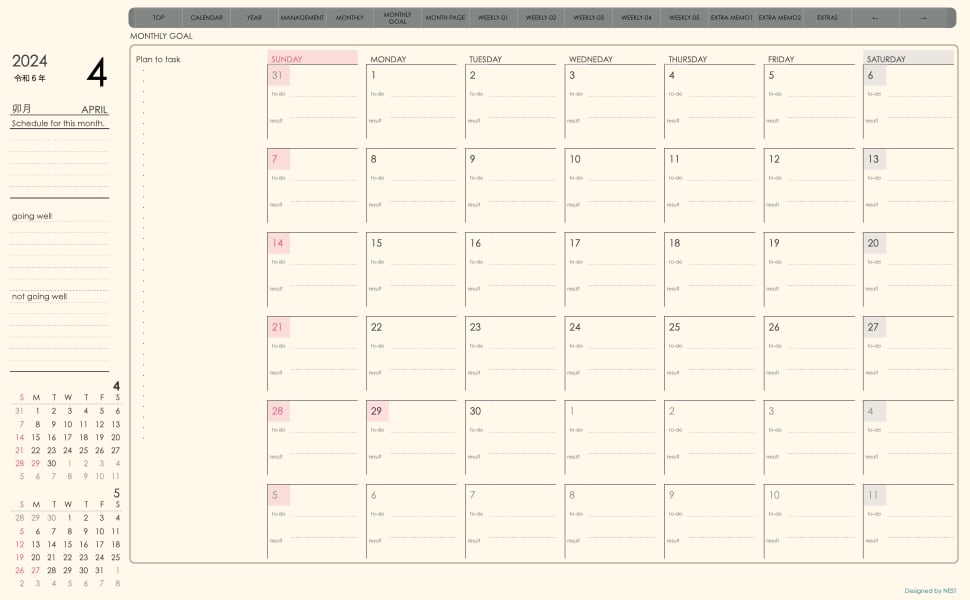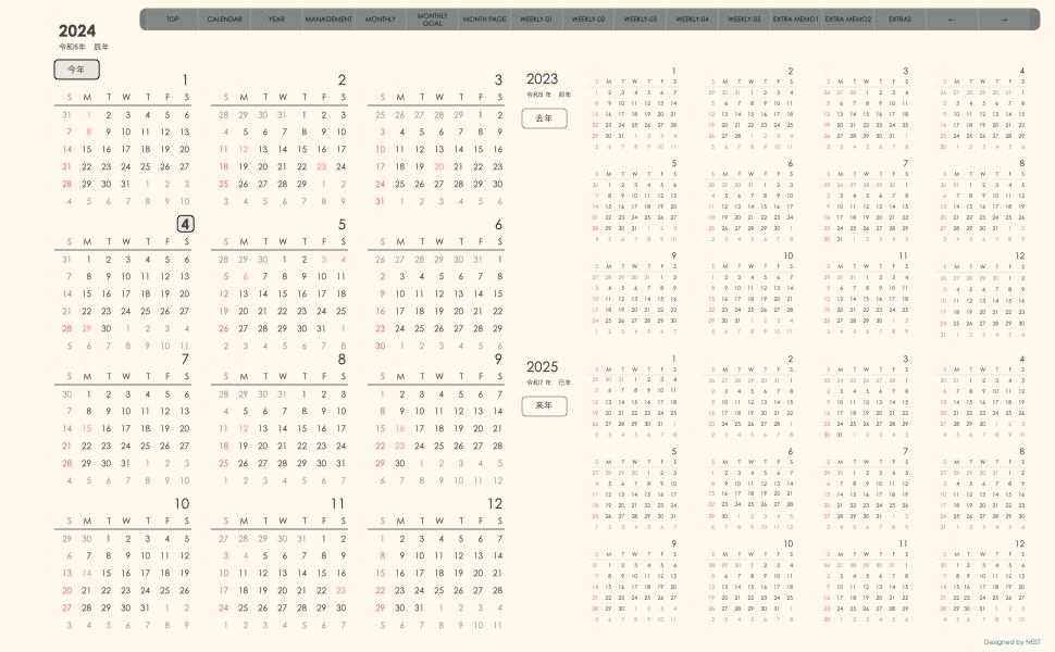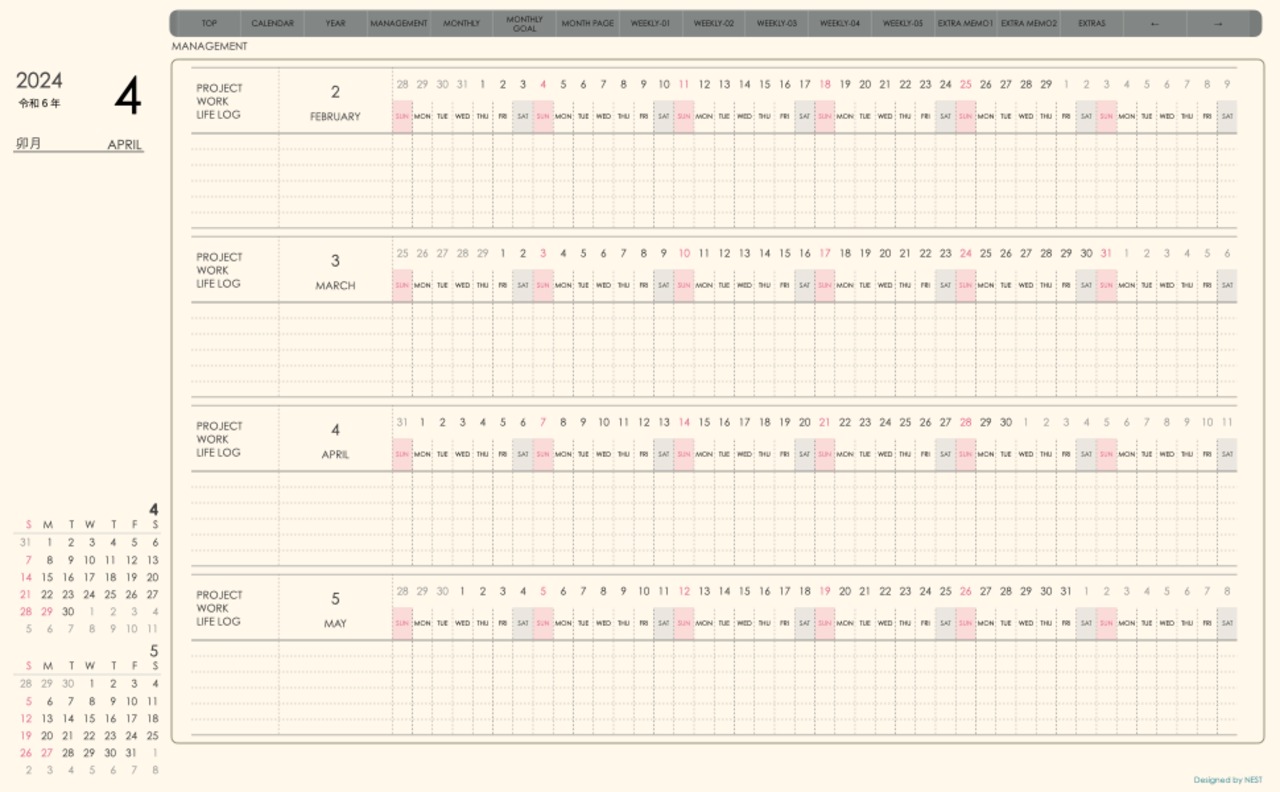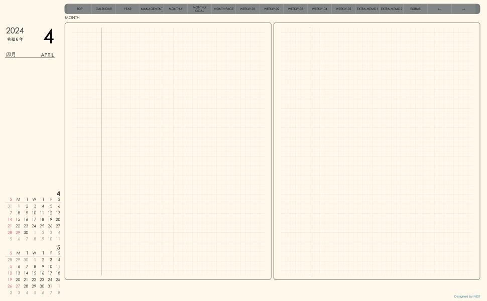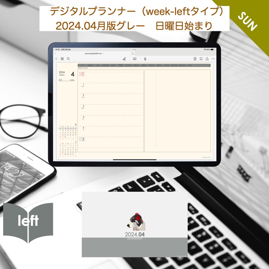 **week-leftシリーズ日曜日始まり2024年04月版**の登場!