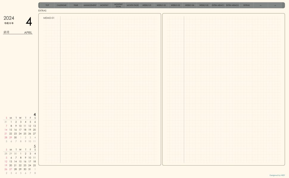 予定の把握とメモの両方が使えるレイアウトとなっています。