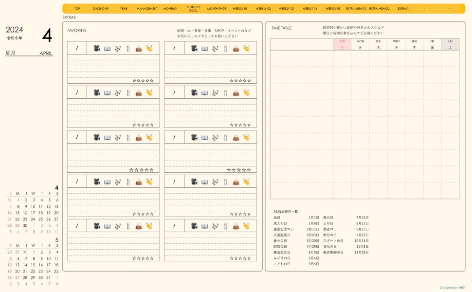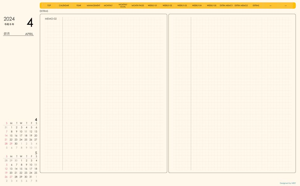 予定の把握とメモの両方が使えるレイアウトとなっています。