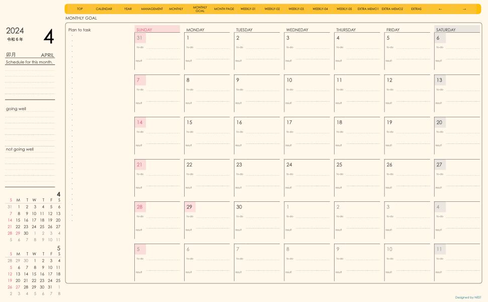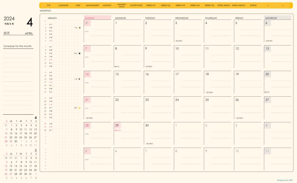 **week-leftシリーズ日曜日始まり2024年04月版**の登場!