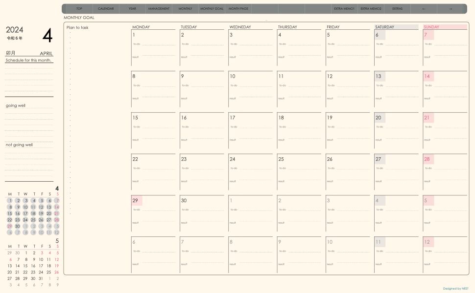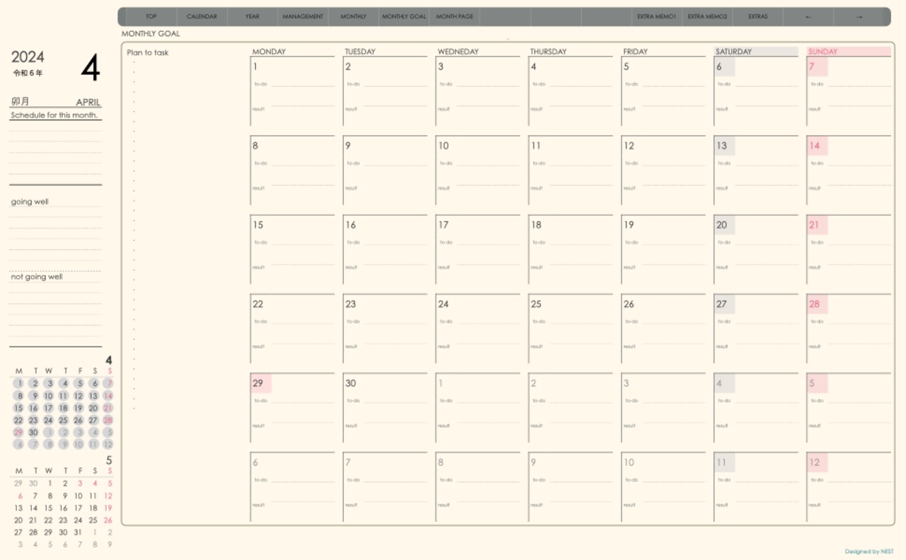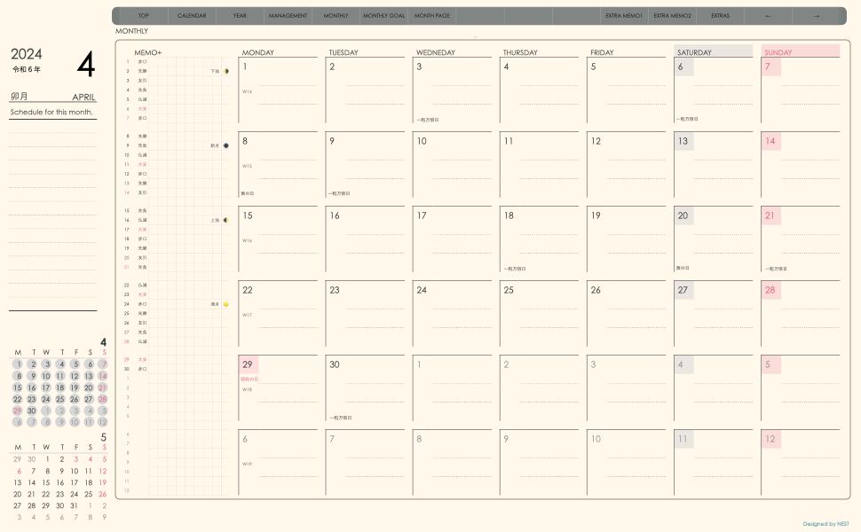 **dayシリーズ月曜日始まり2024年04月版**の登場!