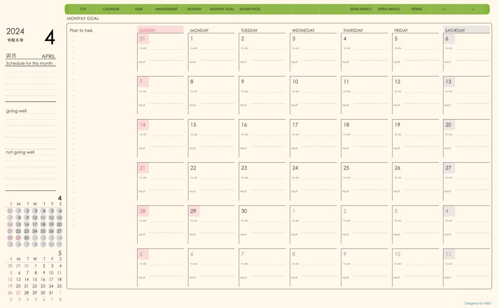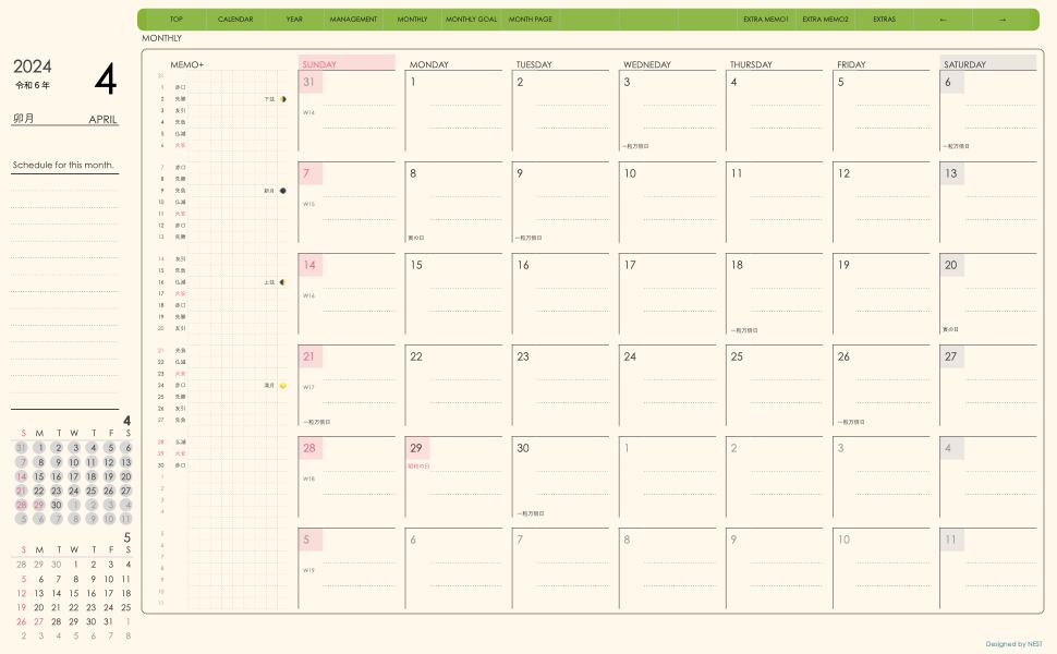 **dayシリーズ日曜日始まり2024年04月版**の登場!