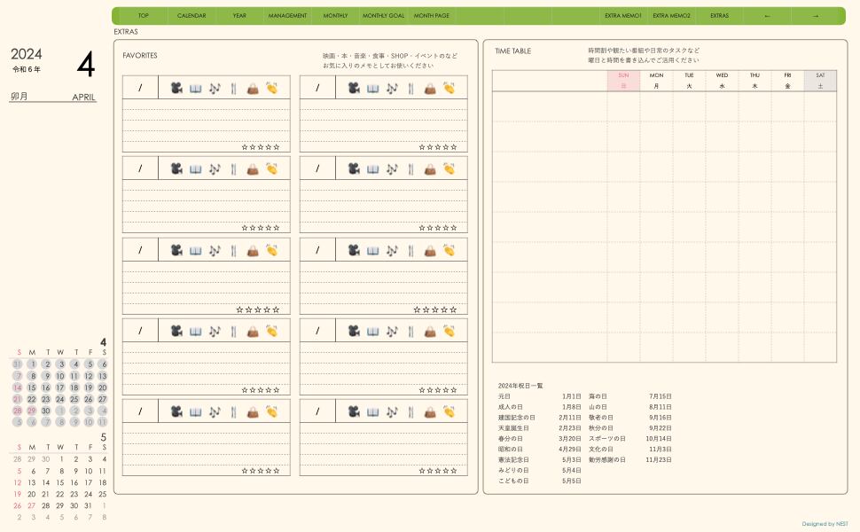 ・日本の祝日を表記(ミニカレンダーにも表記)