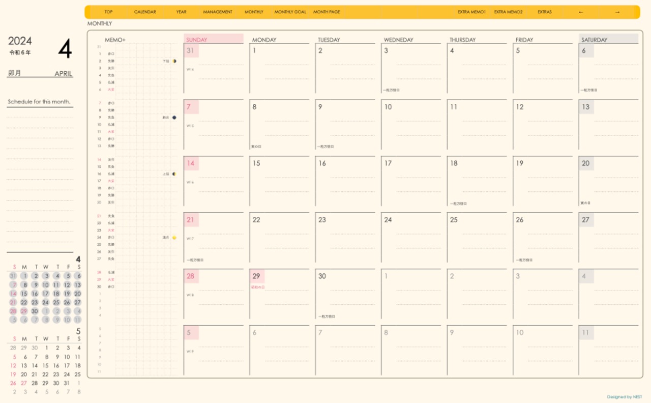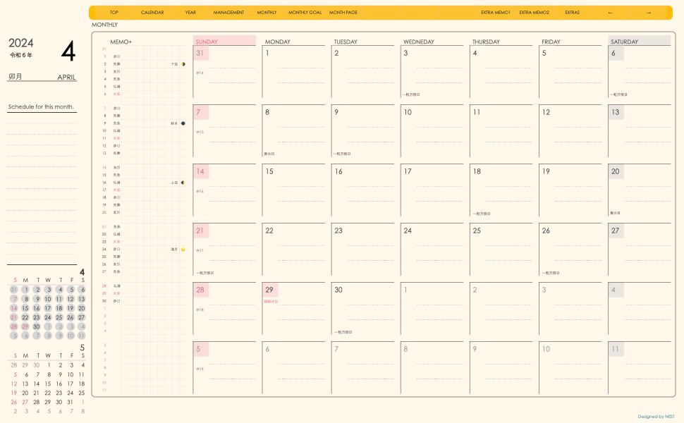 **dayシリーズ日曜日始まり2024年04月版**の登場!