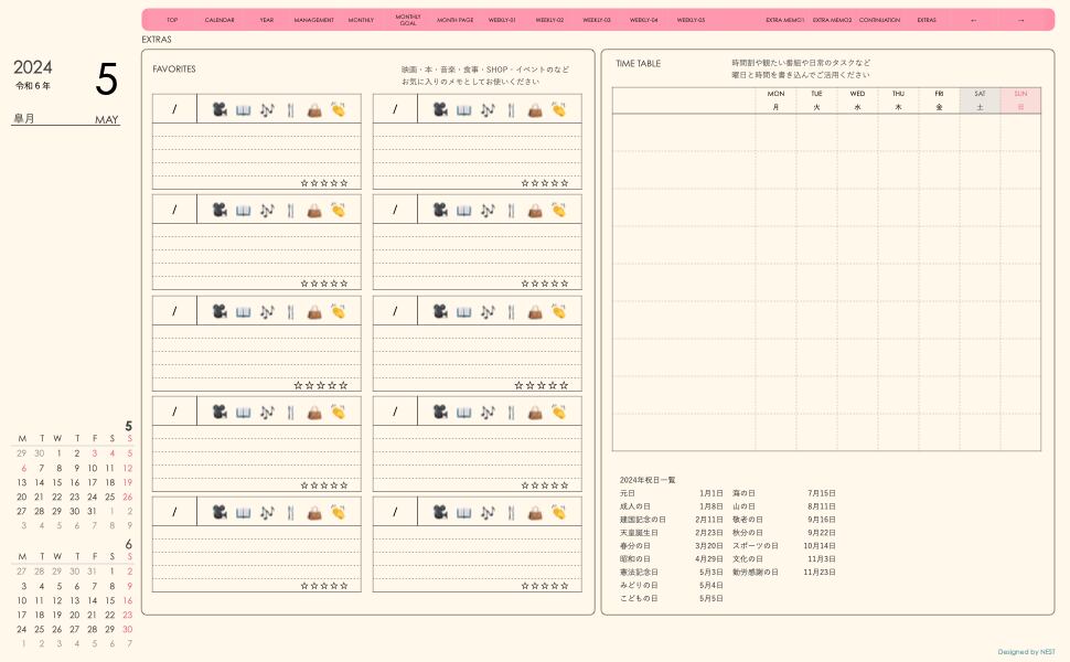 予定の把握と その日のメモの両方が使えるレイアウトとなっていて