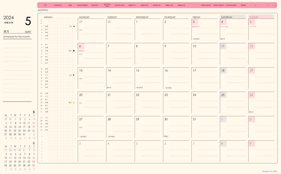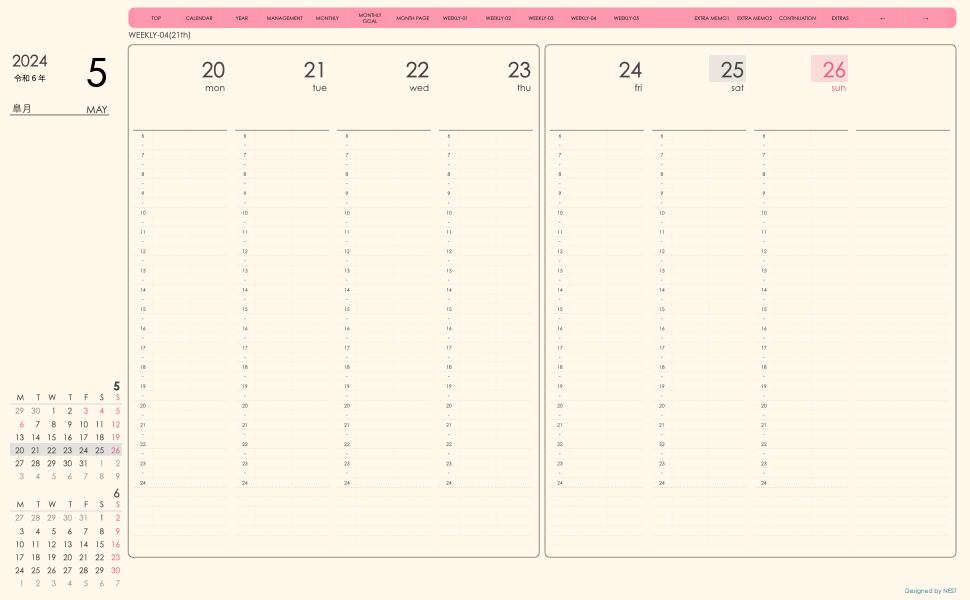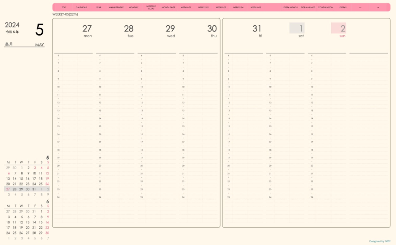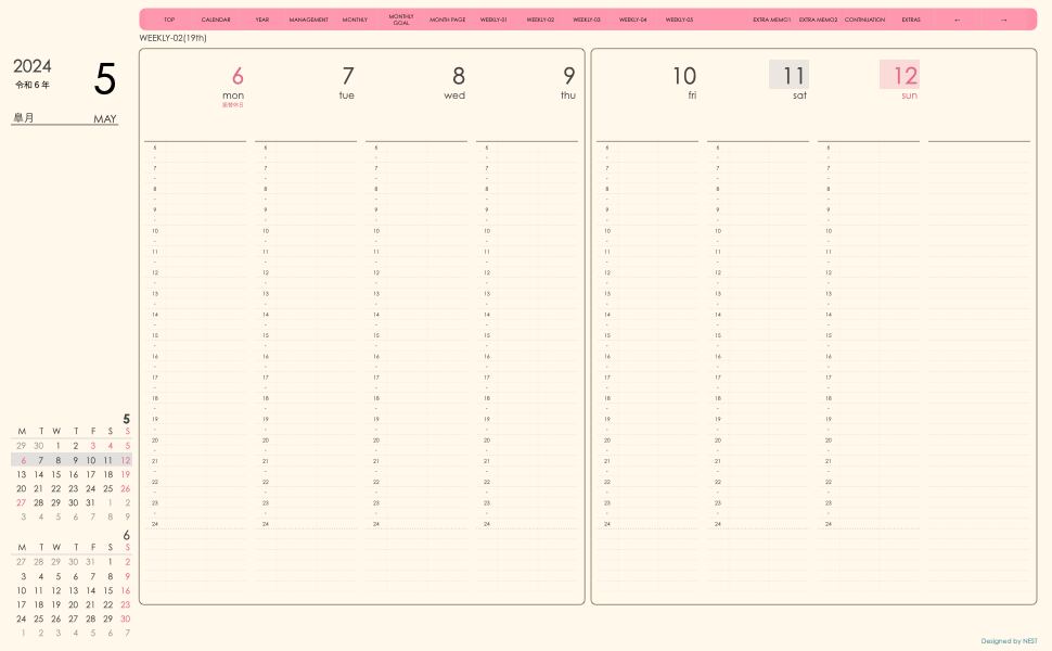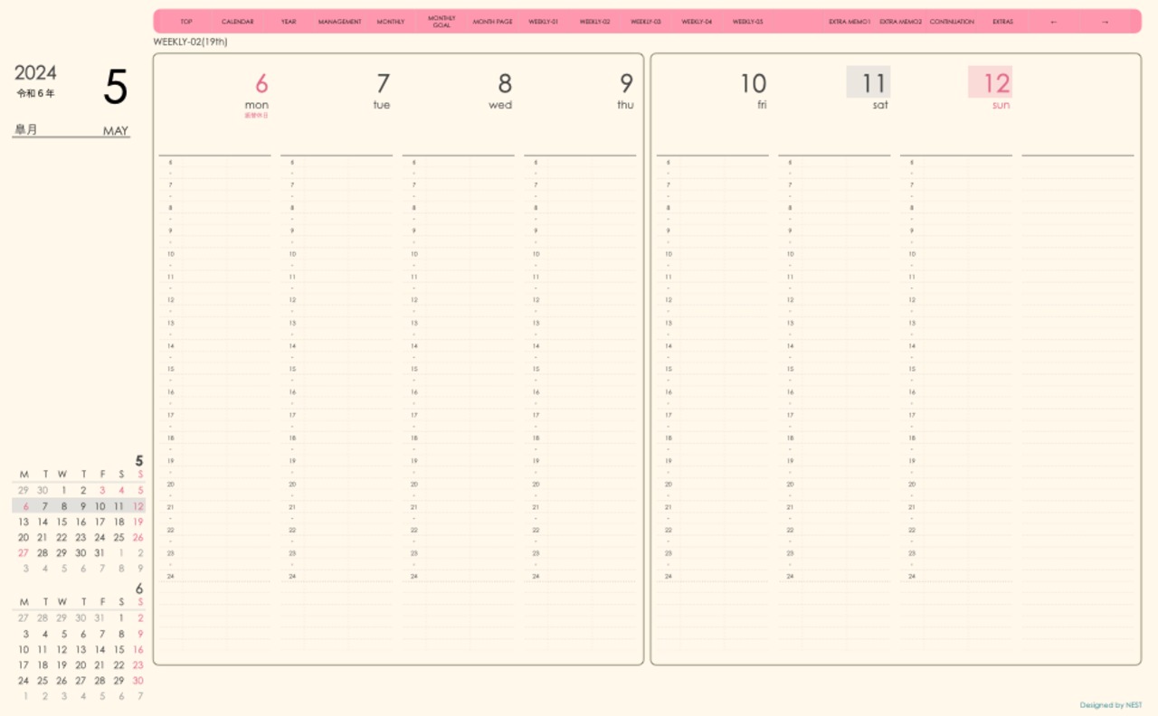 **(week-verticalシリーズ)月曜日始まり2024.05月版**が登場!
