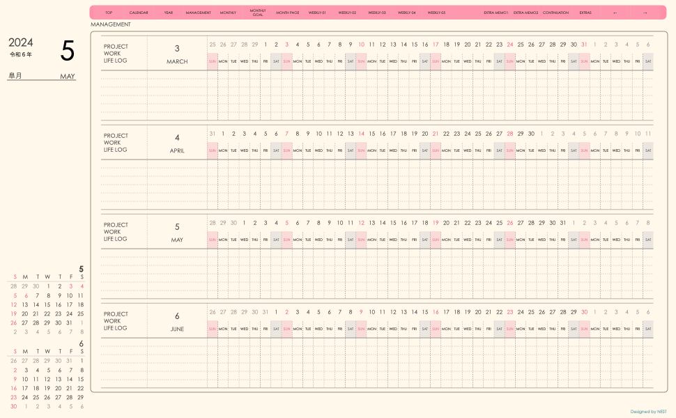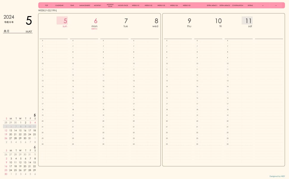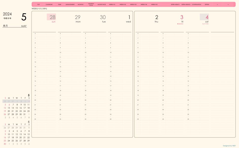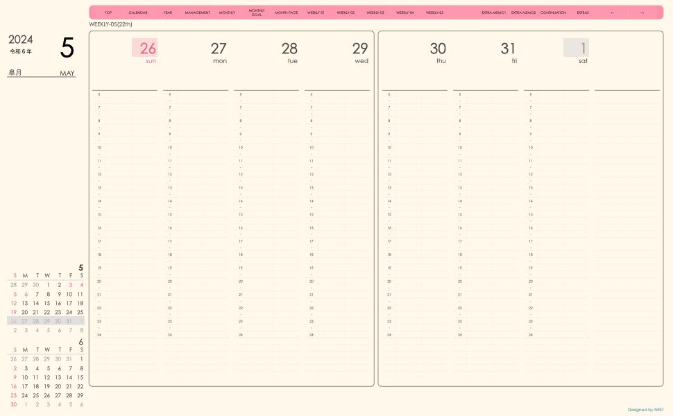 **(week-verticalシリーズ)日曜日始まり2024.05月版**が登場!