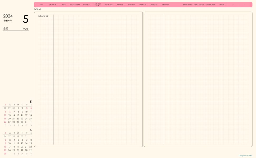 予定の把握と その日のメモの両方が使えるレイアウトとなっていて