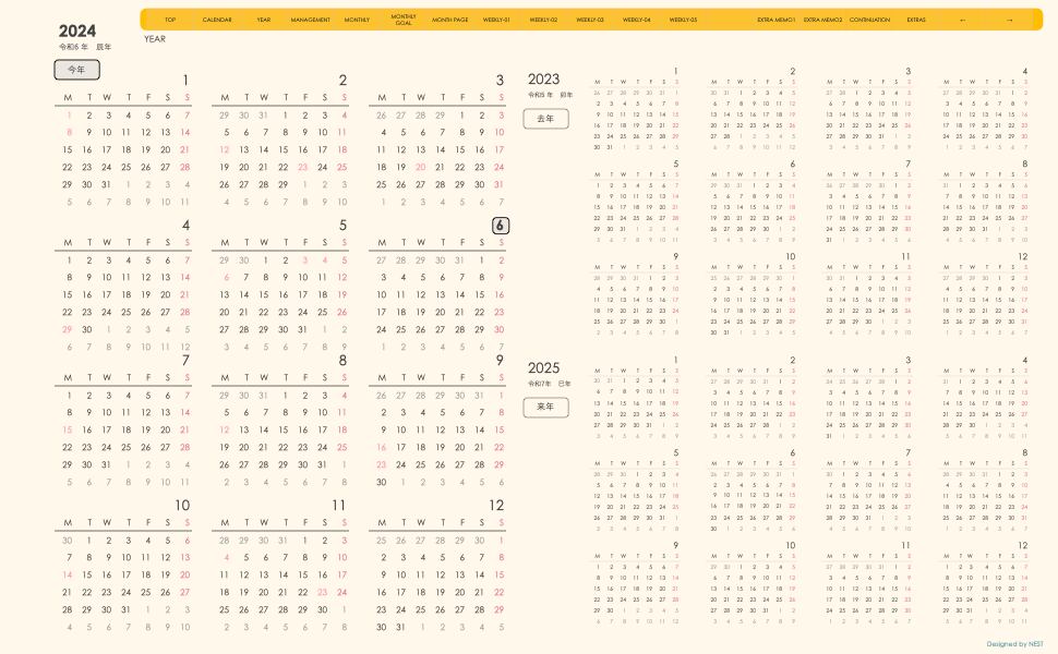 **デジタル手帖(week-leftシリーズ)月曜日始まり2024.06月版**