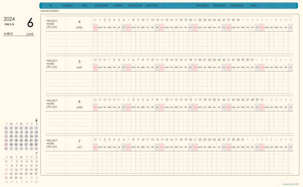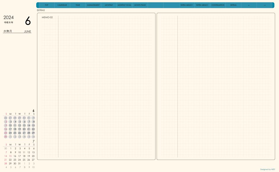 **デジタル手帖(dayシリーズ)日曜日始まり2024.06月版**
