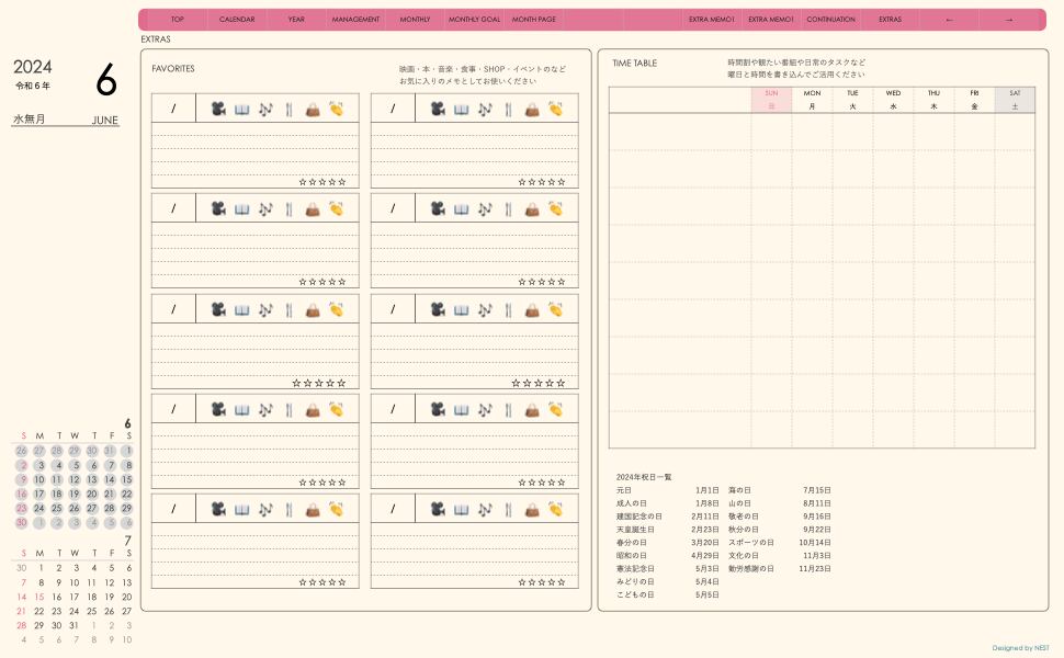 **デジタル手帖(dayシリーズ)日曜日始まり2024.06月版**