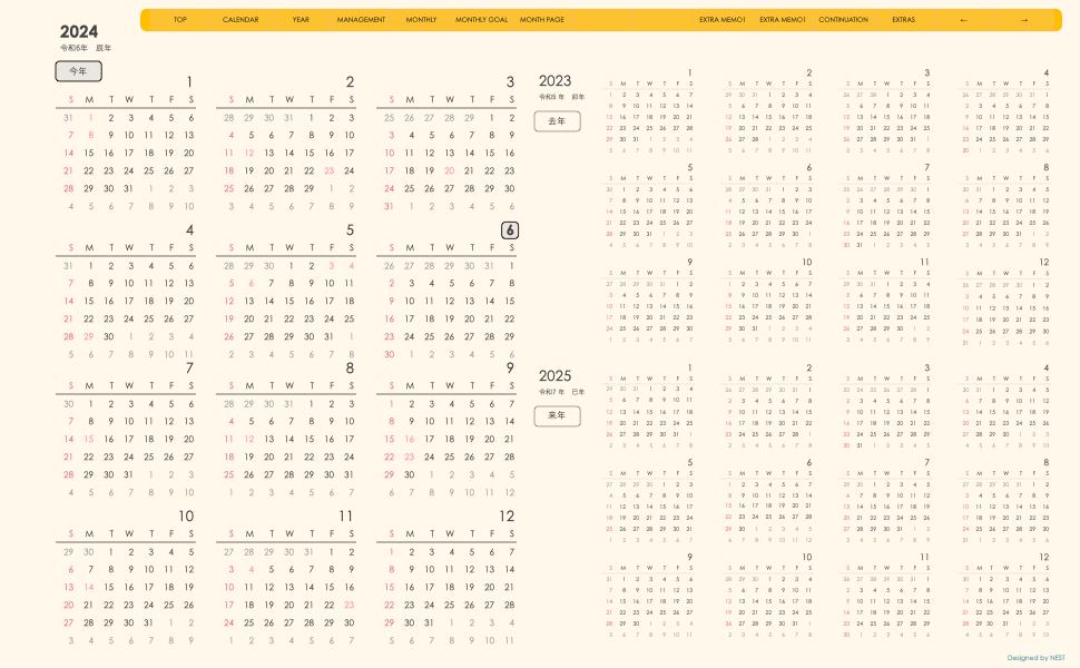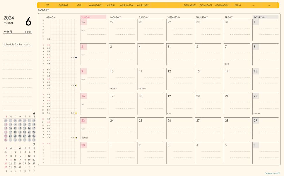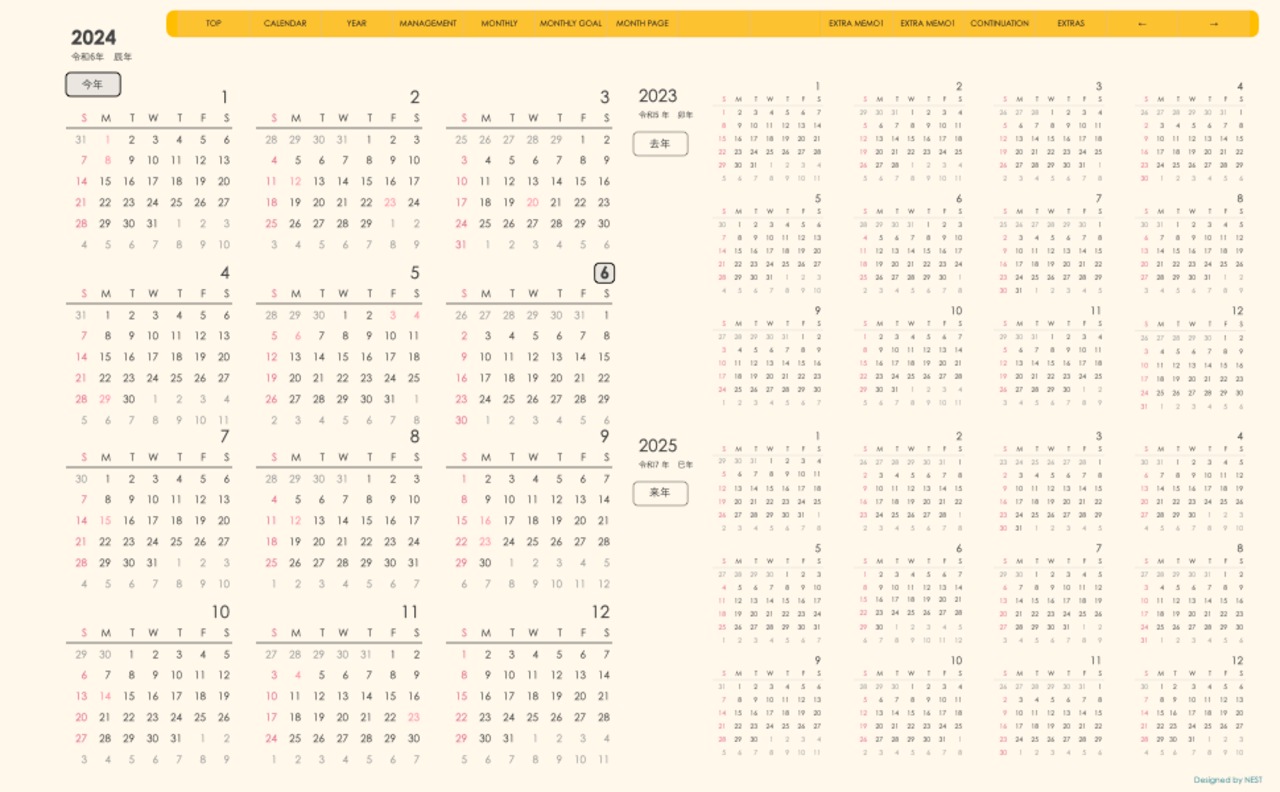 **デジタル手帖(dayシリーズ)日曜日始まり2024.06月版**